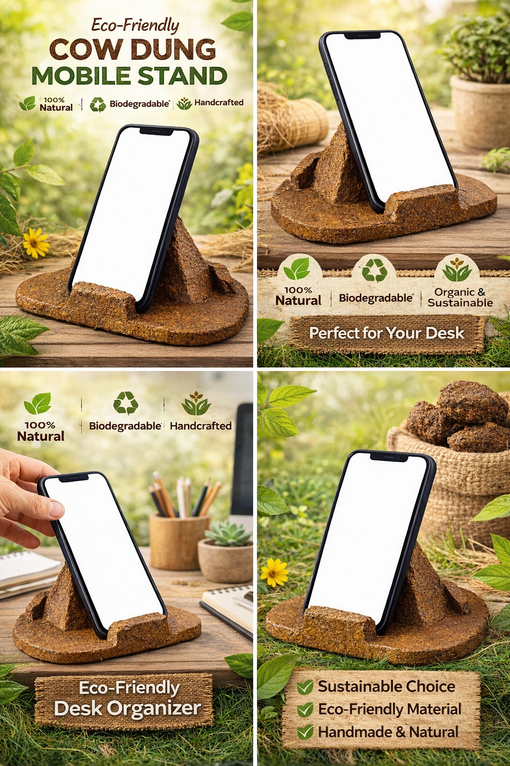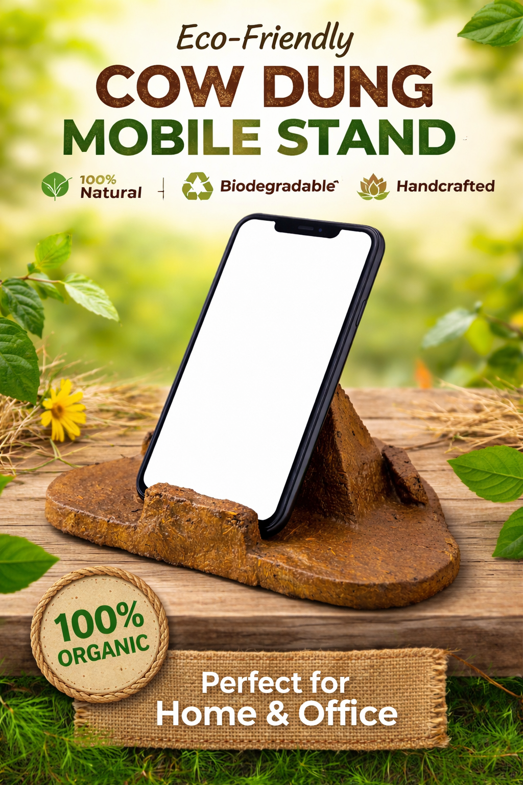 Bring sustainability and tradition to your everyday life with our Handcrafted Cow Dung Mobile Stand, made using natural desi cow dung and traditional drying techniques. Designed to support your smartphone securely, this stand is an ideal blend of utility, eco-conscious living, and Indian heritage.