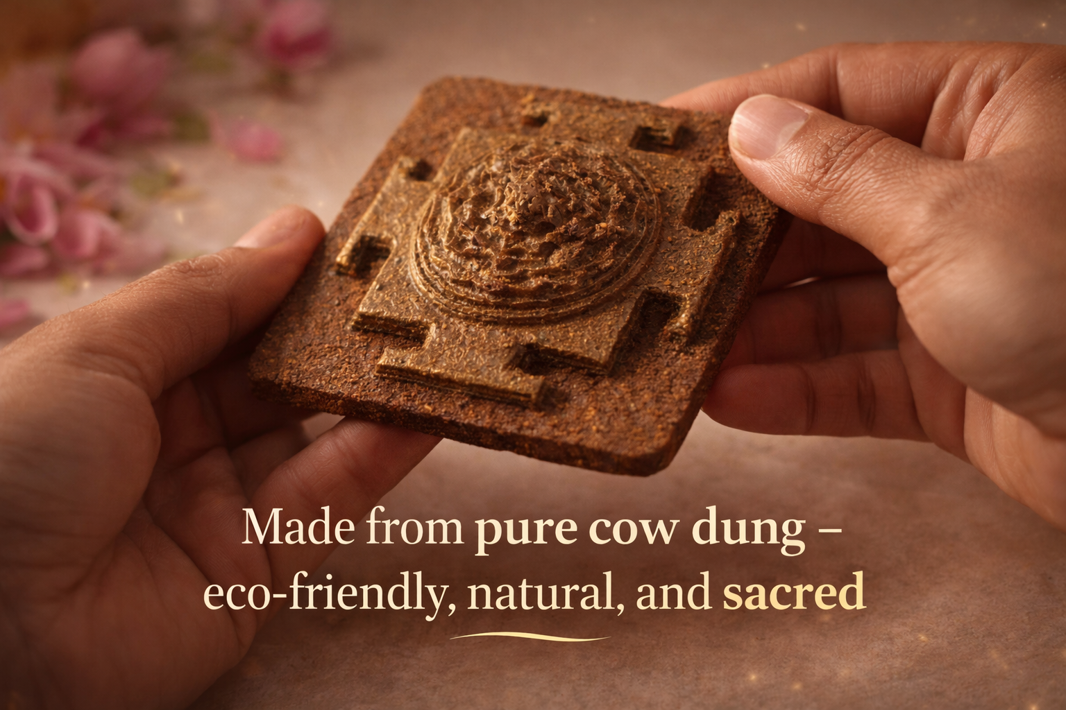 Each Shri Yantra is handmade by skilled artisans using purified cow dung, making it not only spiritually powerful but also eco-friendly and biodegradable. The natural material enhances purity, promotes positive energy, and connects your space with nature’s sacred essence.