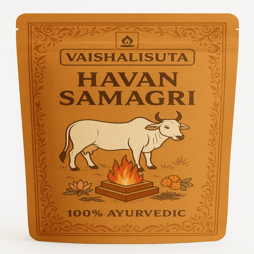 Elevate your spiritual rituals with Vaishalisuta Havan Samagri, a pure and natural blend of herbs, resins, and sacred ingredients designed to create a positive, calming, and purified atmosphere during your havan, puja, or meditation.